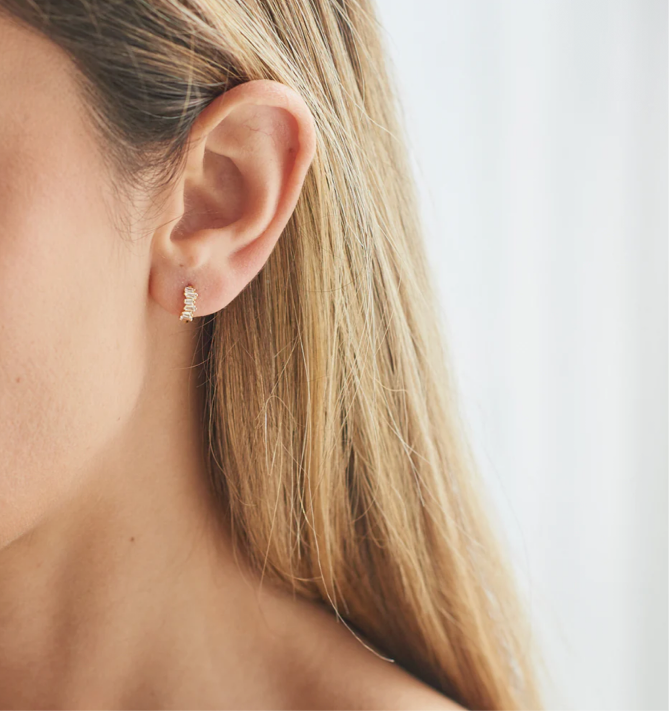 The Bronte Sleepers are a huggie style featuring swarovski crystal. Perfect to layer with hoops or other sleepers.