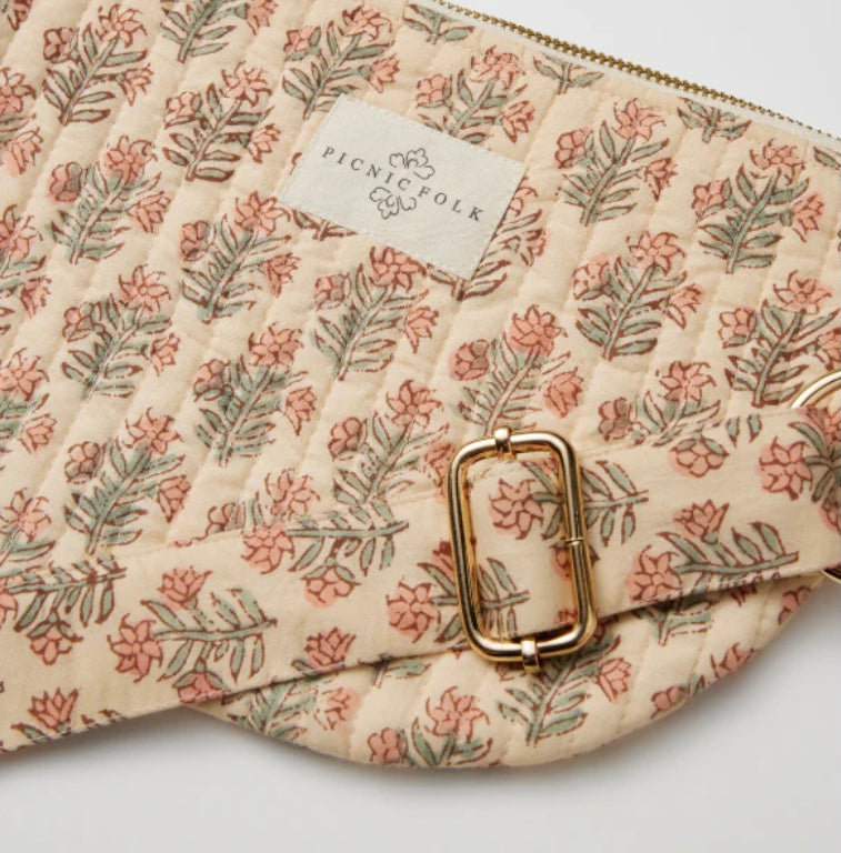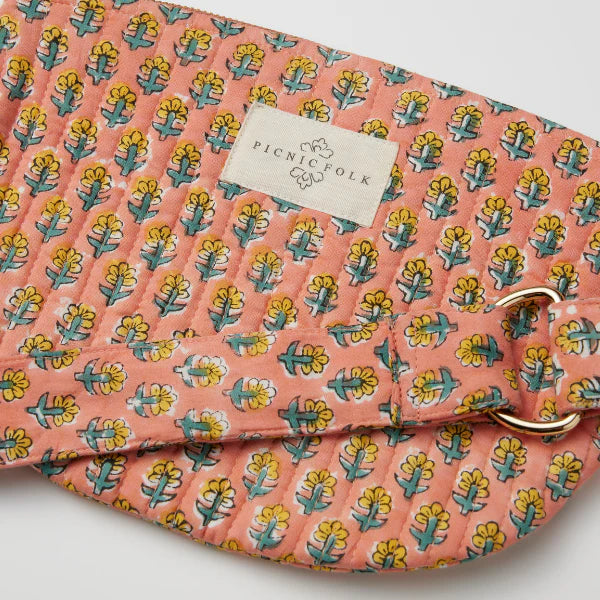 Keep your essentials on hand, organised and at easy access. Our quilted hand block print Cross Body Bag will accompany you wherever life takes you and adds the perfect pop of colour. This beauty is shaped to fit the body for easy carrying and to be hands free.