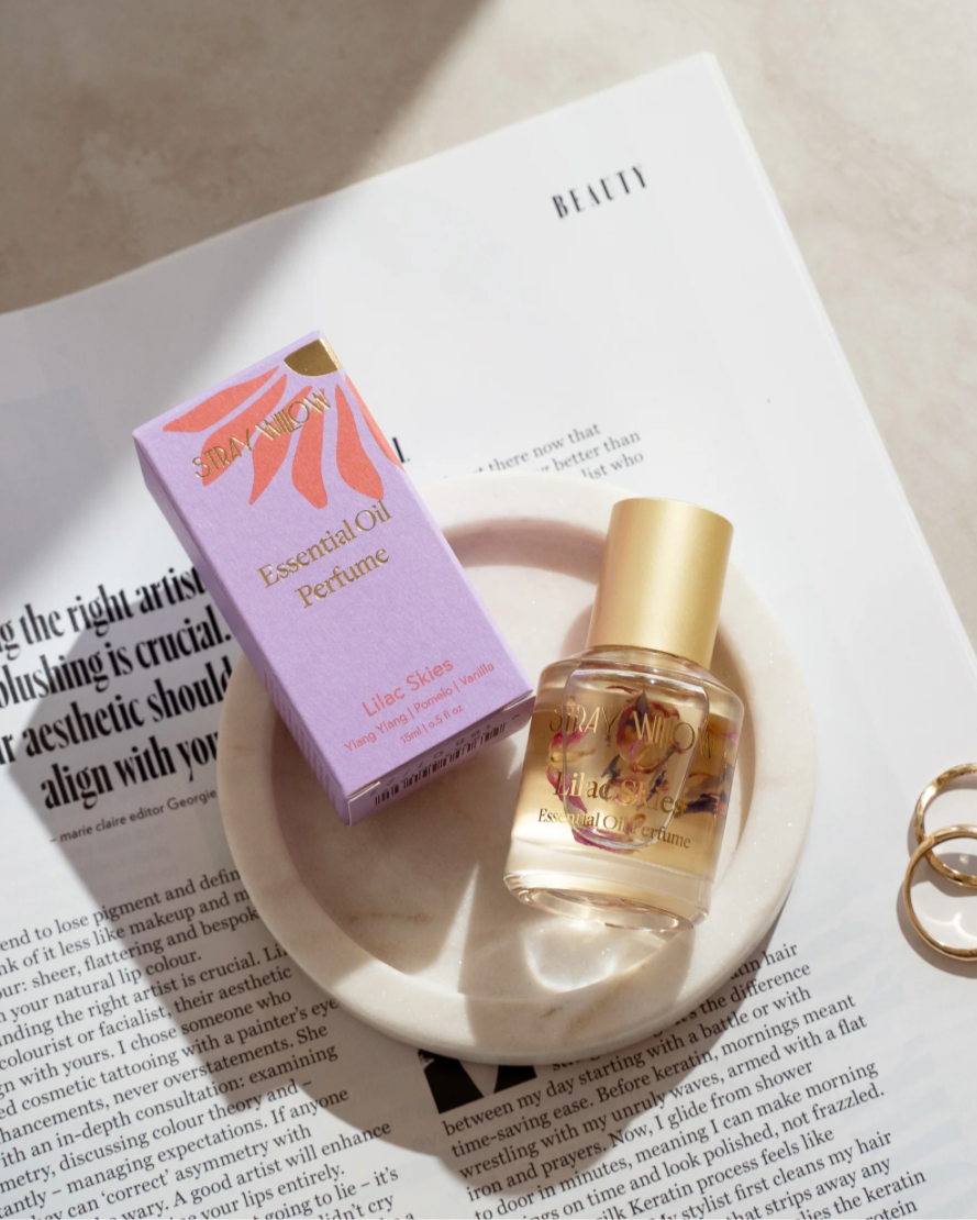 Drift softly through your moments with mindful ease with our Lilac Skies perfume. This Australian-made natural essential oil perfume roller soothes and uplifts. Pomelo and Ylang Ylang essential oils awaken the senses, while Jasmine and Ho Wood bring balance and quiet focus. Warm Vanilla and earthy Patchouli ground you in steady calm. Enriched with nourishing Apricot and Coconut oils, this lightweight, alcohol-free natural perfume glides softly on sensitive skin. Sustainably packaged in recyclable glass, it invites mindful self-care moments throughout your day.