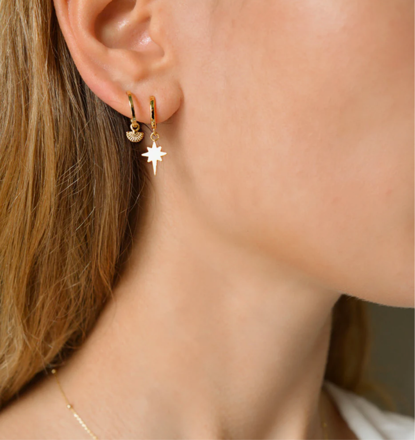The Priya Sleepers are a delicate sleeper style with hanging charm. A pretty style that you can wear on their own for a simple everyday look.