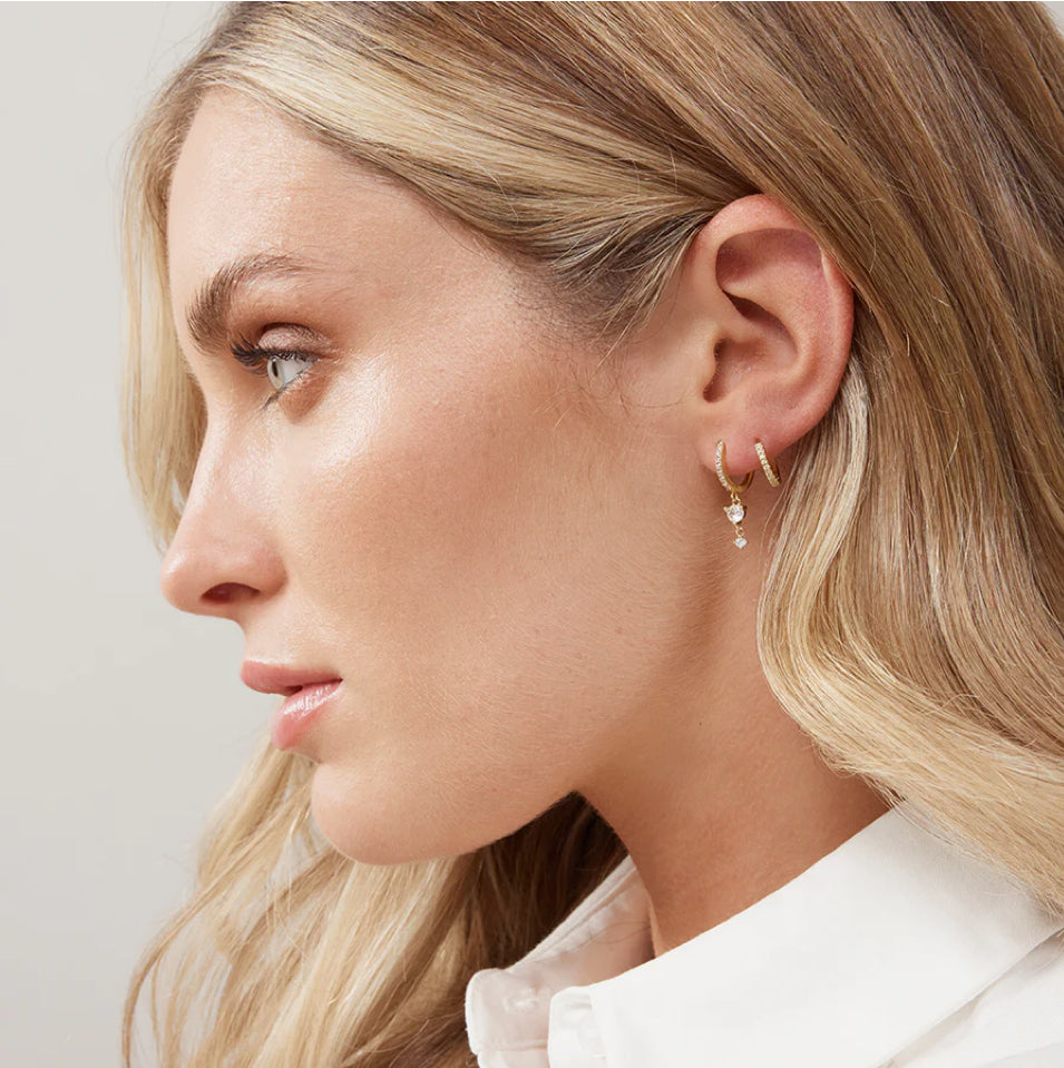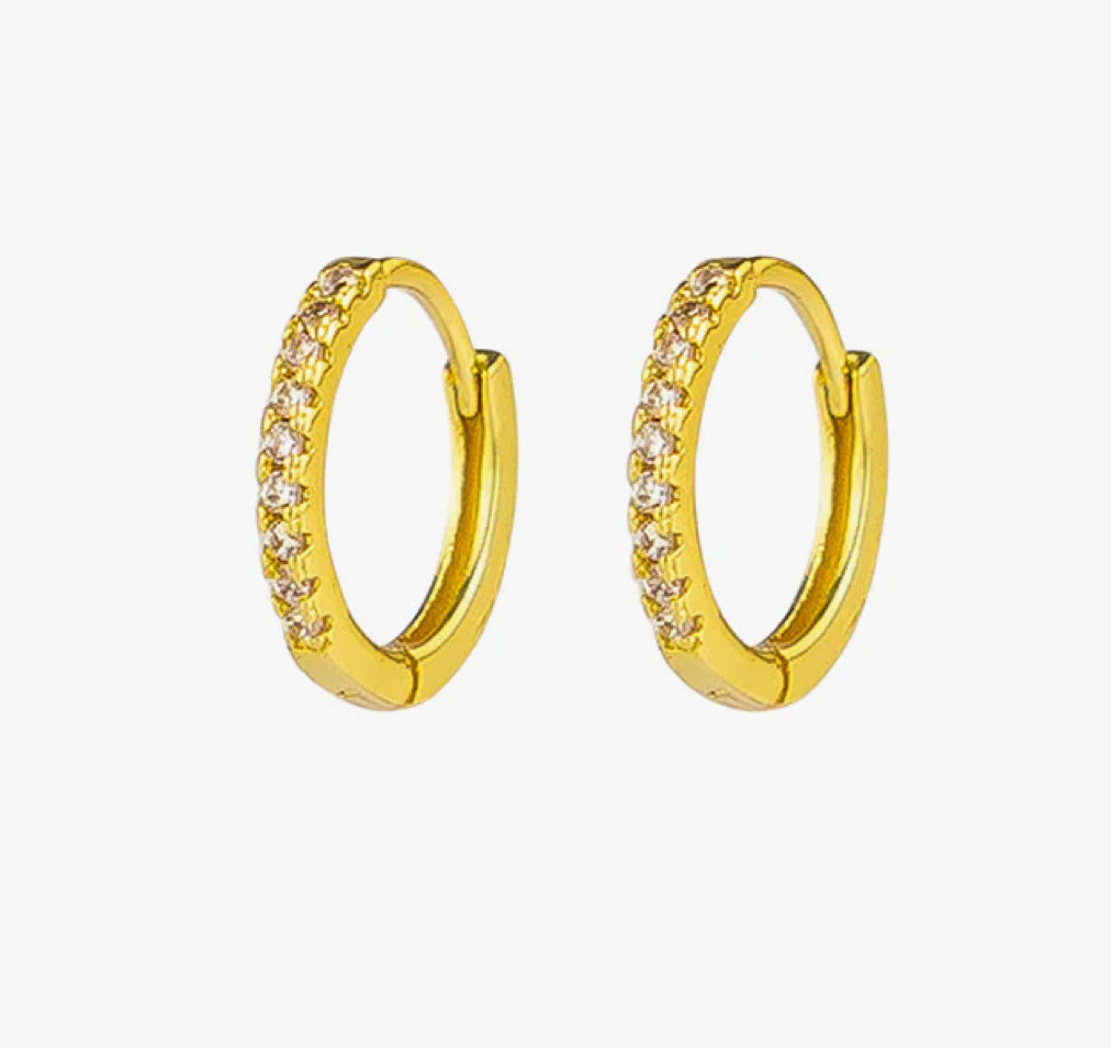 The Rachel Sleepers are a classic hoop shape with small clear crystals. A simple classic style that will go with any outfit.