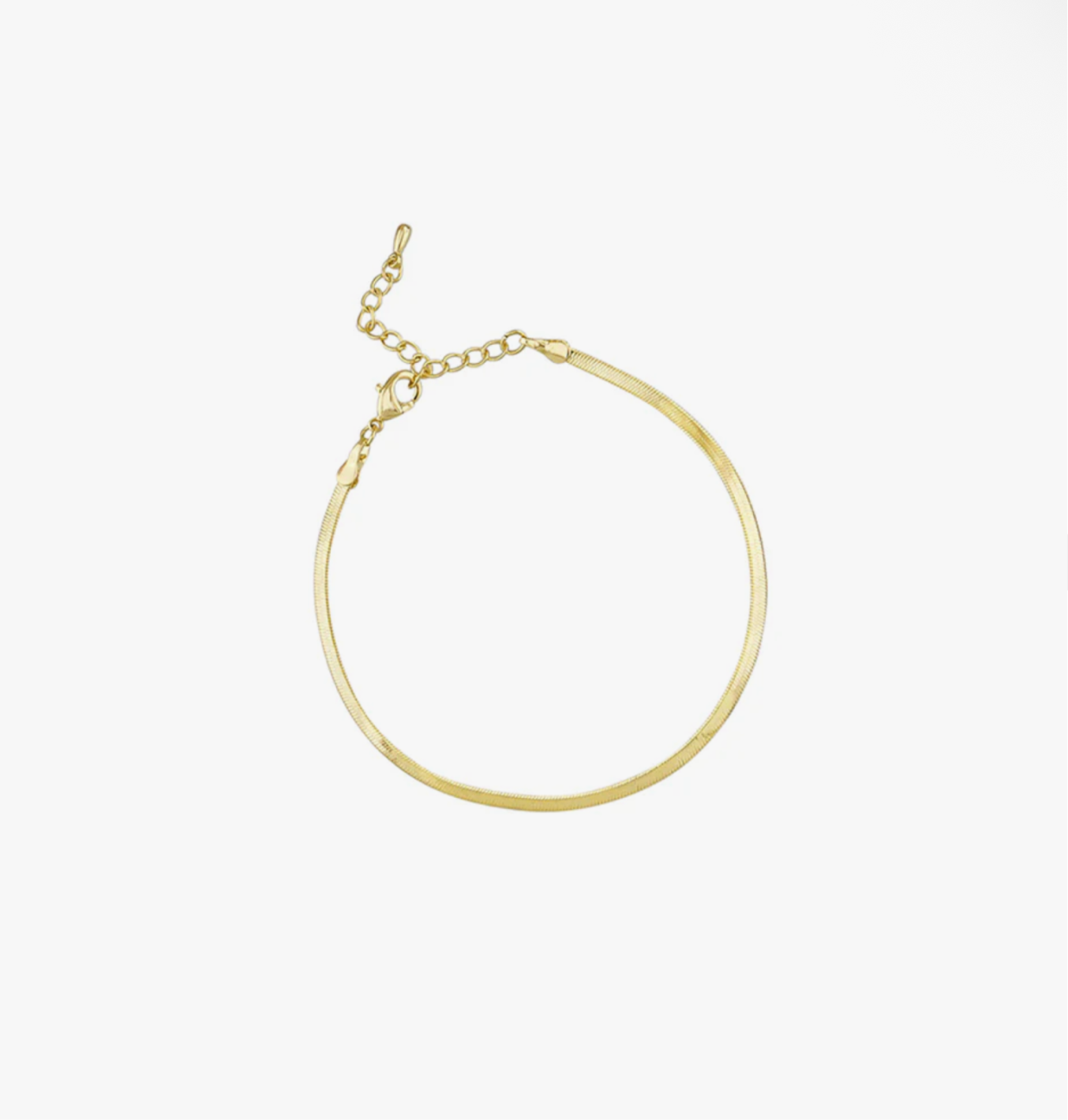 The Snake Chain Bracelet is a light weight flat chain, great to layer with other chains to create an elevated look or wear on its own for simple elegance.