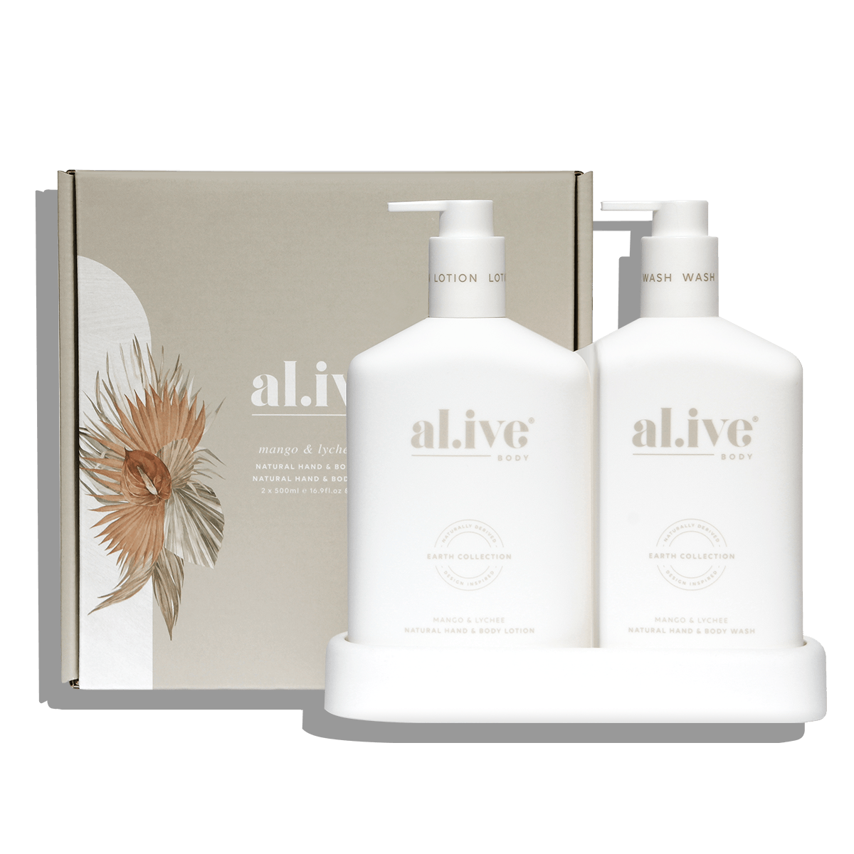 The al.ive body Mango & Lychee Hand & Body Wash/Lotion Duocontains a luxurious blend of naturally derived ingredients, fortified with essential oils and native botanical extracts.